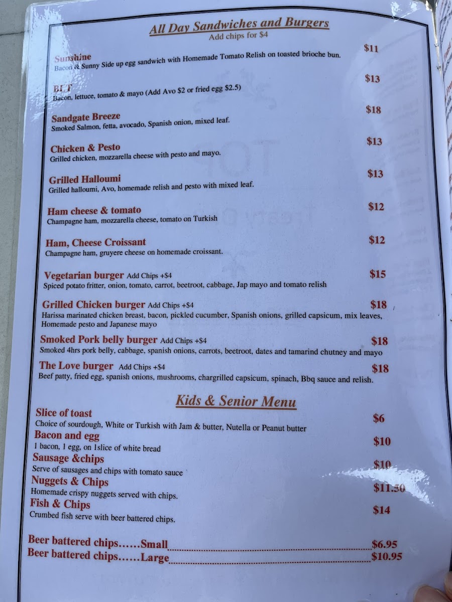 Treaty of Paris (Top Cafe) Sandgate Menu
